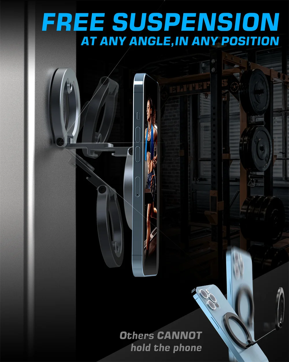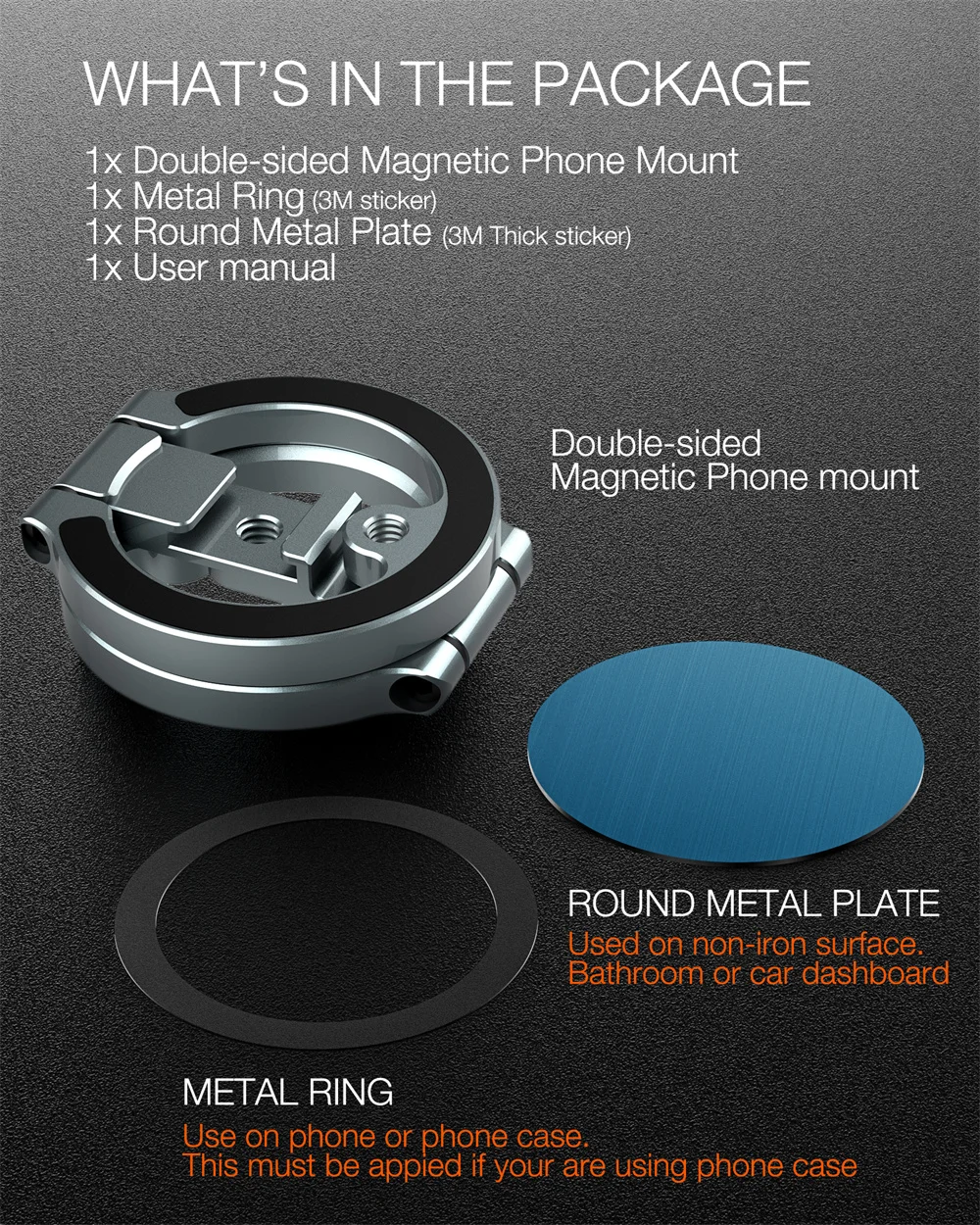 MG-02 Double Magnetic Ring Mount▶ Dual side magnet rings powers 2800Gs, can withstand a weight of up to 30N/6LB+, equivalent to the weight of 10 iPhone 15 Pro Max devices. Ensures a stable phone-holding solution with its magnetic design, a must-have accessory for truck, lorry, tractor, forklift, boat and motor vehicles, also it can stick on gym equipment, refrigerator, metal fire door, metal rack, metal shelf, magnetic and other metal surfaces etc