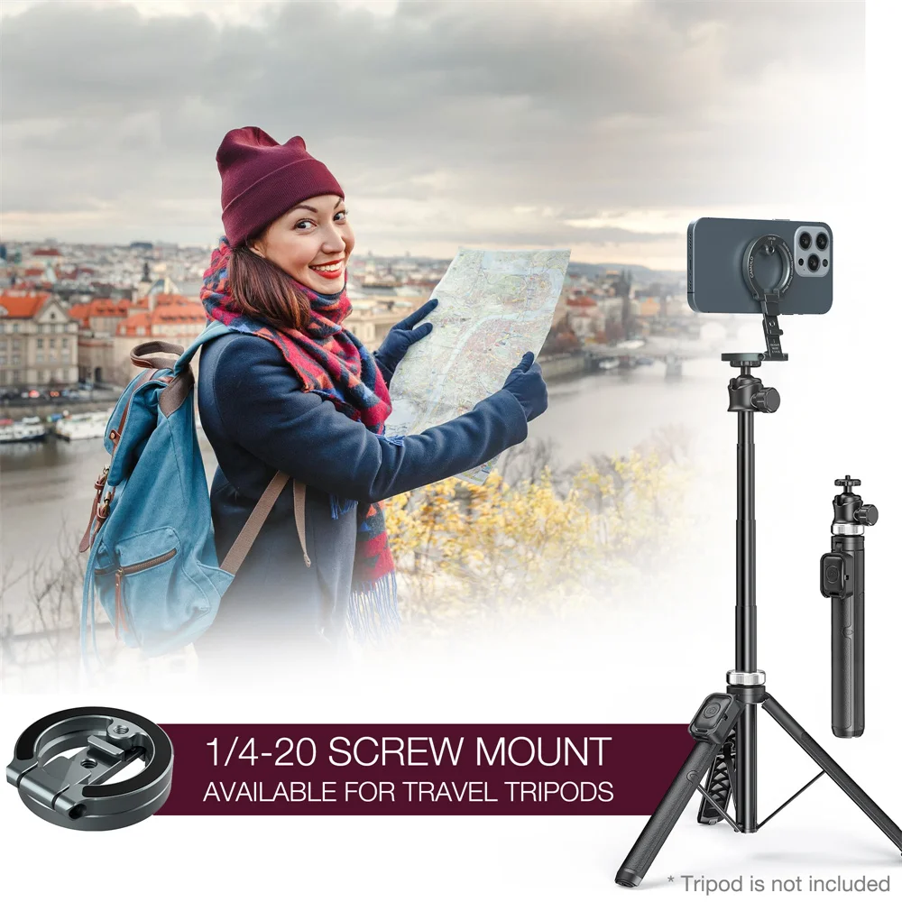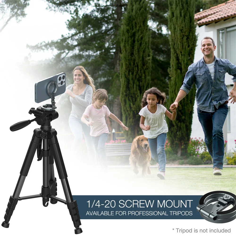 1/4"-20 Phone Tripod Mount▶ This tripod phone holder has 1/4" screw hole & cold shoe that is compatible with tripods, selfie lights, fill lights, and ring lights, making installation quick and easy. Just tighten the tripod phone magnetic bracket to the screw, and you're good to go