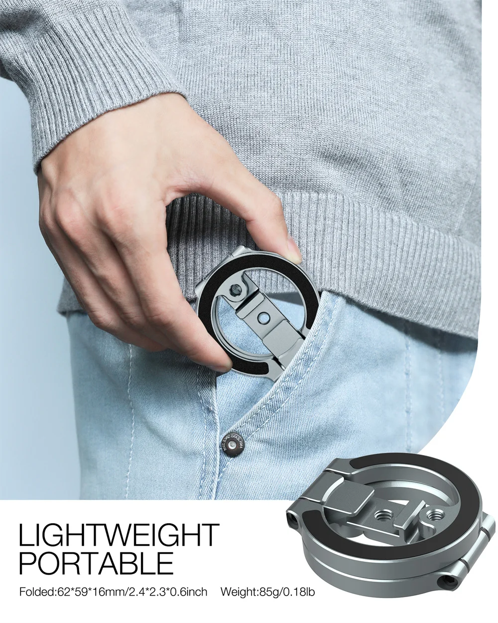 Compact & Portable Ring Holder▶ This double magnetic ring phone holder is foldable and allows you to travel on the go, just fold it and put it into your backpack or magnetically attached to the back of your phone, it can bring you great convenience, takes up no space at all, and can be folded repeatedly without loose. Folded dimensions: 2.4 inches in diameter and 0.6 inches thick. Weighs only 85 grams / 3 ounces