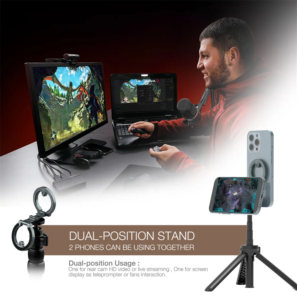 NEW Dual Magnetic Phone Holder 1/4" Screw Tripod Mount for Magsafe Iphone 16 15 14 13 12 Pro Max Android Gym Magnet Phone Stand